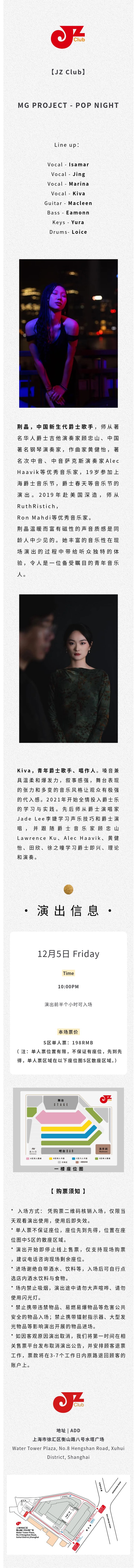 演出名称:【上海】【JZ Club】MG PROJECT - POP NIGHT【网上订票】演出时间:2025.12.05-12.06