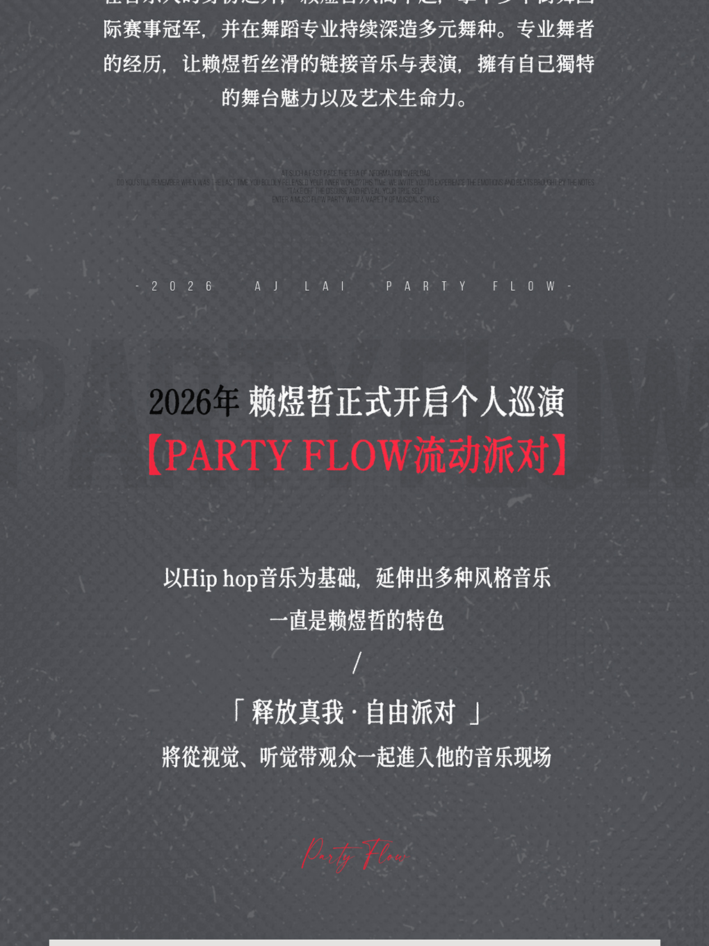 2、【上海】赖煜哲《PARTY FLOW(流动派对)》2026巡回演唱会-上海站【网上订票】门票怎么买票?