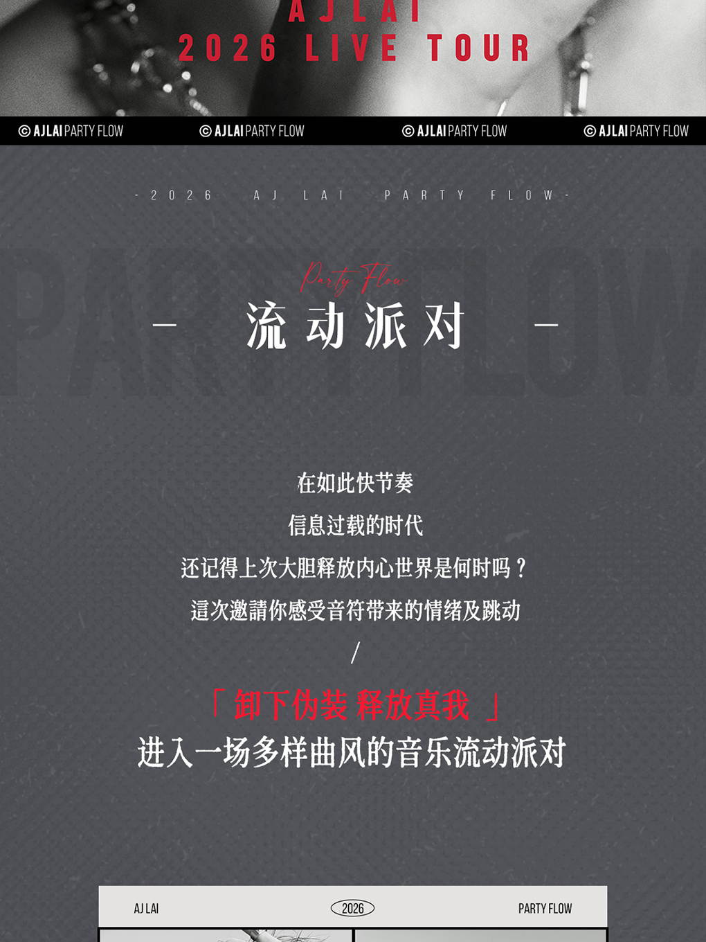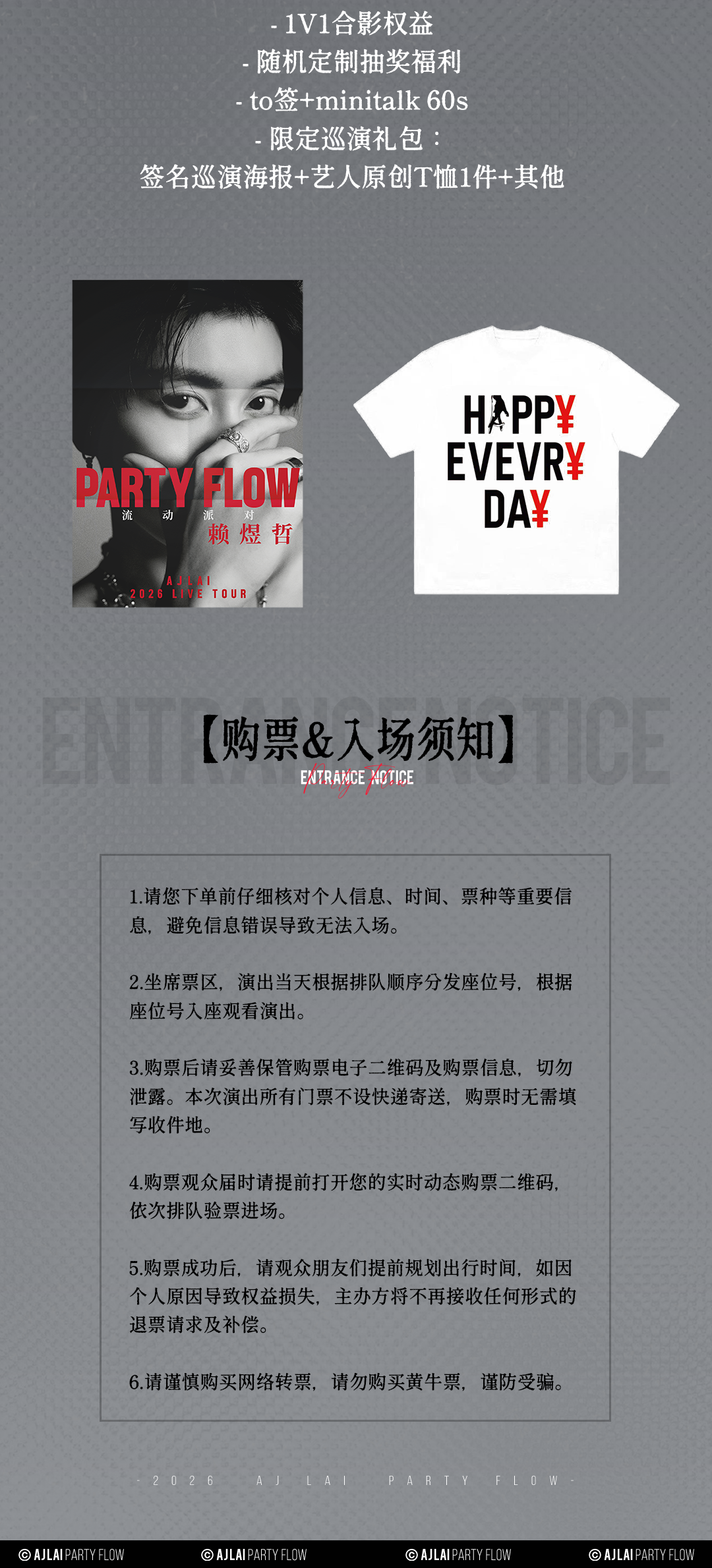 1、【上海】赖煜哲《PARTY FLOW(流动派对)》2026巡回演唱会-上海站【网上订票】门票多少钱?