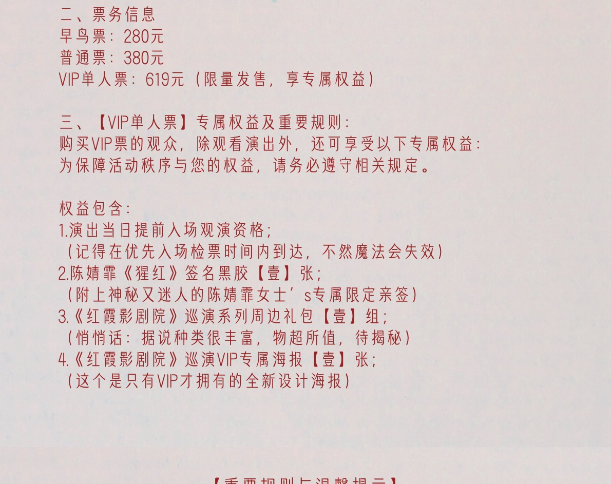 1、【上海】陈婧霏《红霞影剧院》巡回演唱会 上海站【网上订票】门票多少钱?
