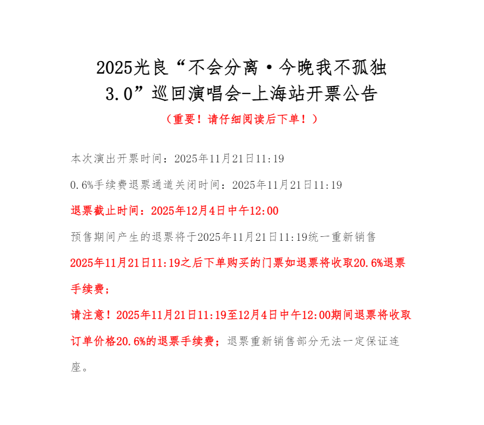 1、【上海】2025光良“不会分离·今晚我不孤独3.0”巡回演唱会-上海站【网上订票】门票多少钱?