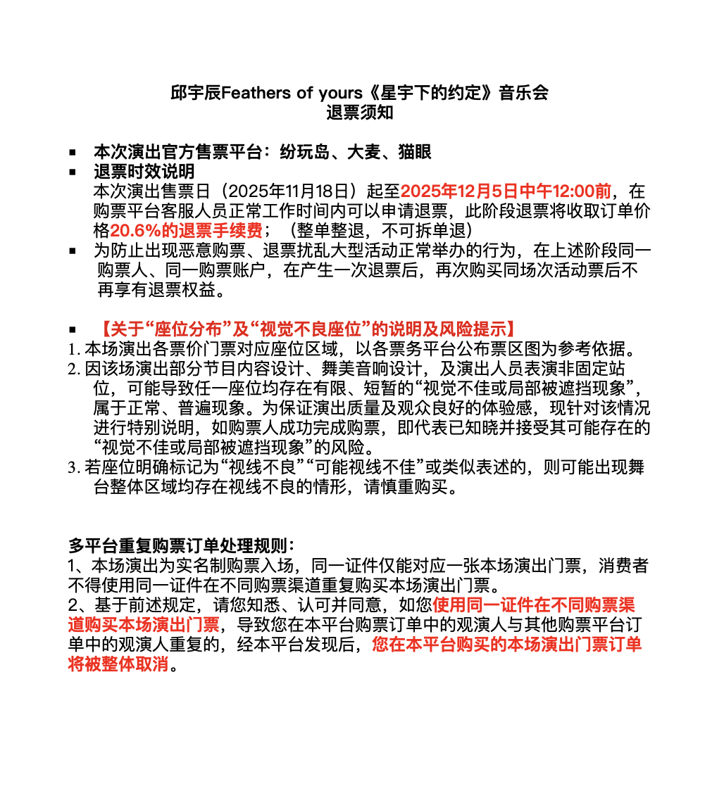 演出名称:【上海】邱宇辰 Feathers of yours《星宇下的约定》音乐会-上海站【网上订票】