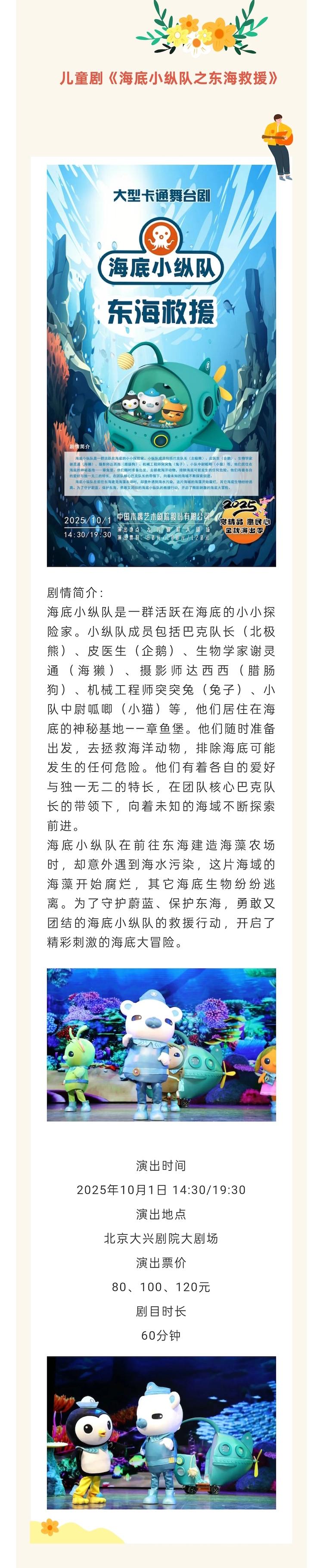 【北京】“赏精品 惠民心”2025年“金秋演出季”儿童剧《海底小纵队之东海救援》