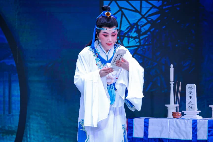 本剧中,贾宝玉与林黛玉的唱腔分别属于越剧徐(玉兰)派和王(文娟)派。徐派表演富有激情,善于刻画人物,俊逸潇洒,神采夺人。音色甜亮,音域宽广,唱腔高亢激昂,热情奔放,刚柔相济,华彩跌宕,突破了越剧婉约的格调,注入了高亢昂扬的旋律。王派唱腔吐字清晰,行腔自然,精细传神,于朴实中见华丽,淡雅中见浓艳,腔自情出,委婉动人。王派唱腔保留许多朴实流畅的“四工腔”。