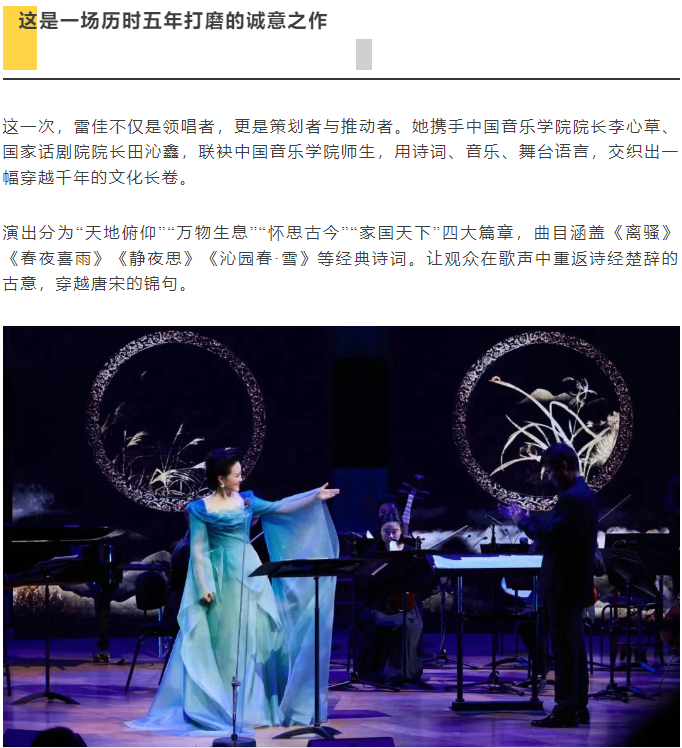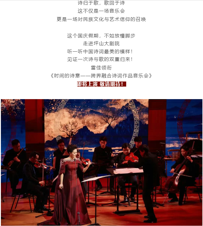 演出名称:【深圳】10月3日时间的诗意——雷佳跨界融合诗词作品音乐会【网上订票】演出时间:2025.10.03 周五 20:00