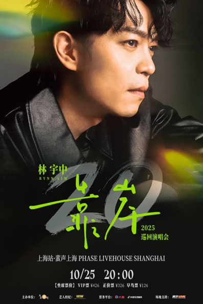 他是来自马来西亚的全能创作才子——林宇中(Rynn Lim)!2025年,是他闪耀华语乐坛的第20个年头!为了纪念这意义非凡的音乐旅程,林宇中带着他满载回忆与感悟的《靠岸20》巡回演唱会,深情靠岸蜚声上海PHASE LIVEHOUSE SHANGHAI!