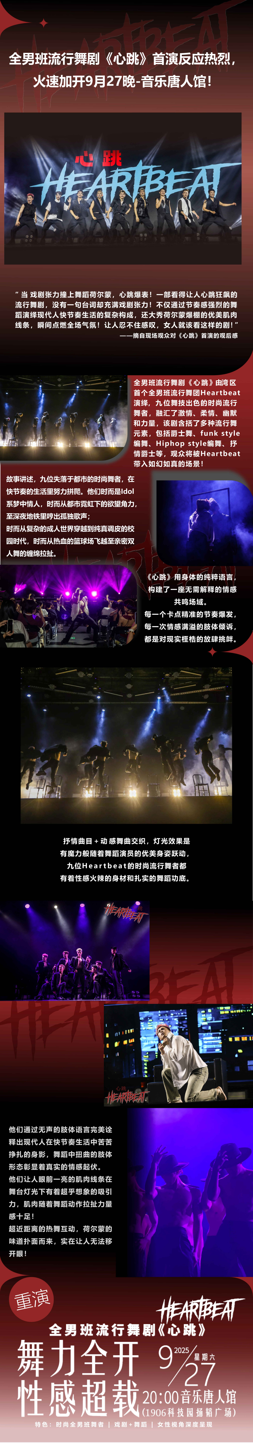 演出名称:【广州】全男班流行舞剧《心跳》【网上订票】演出时间:2025.09.27 周六 20:00