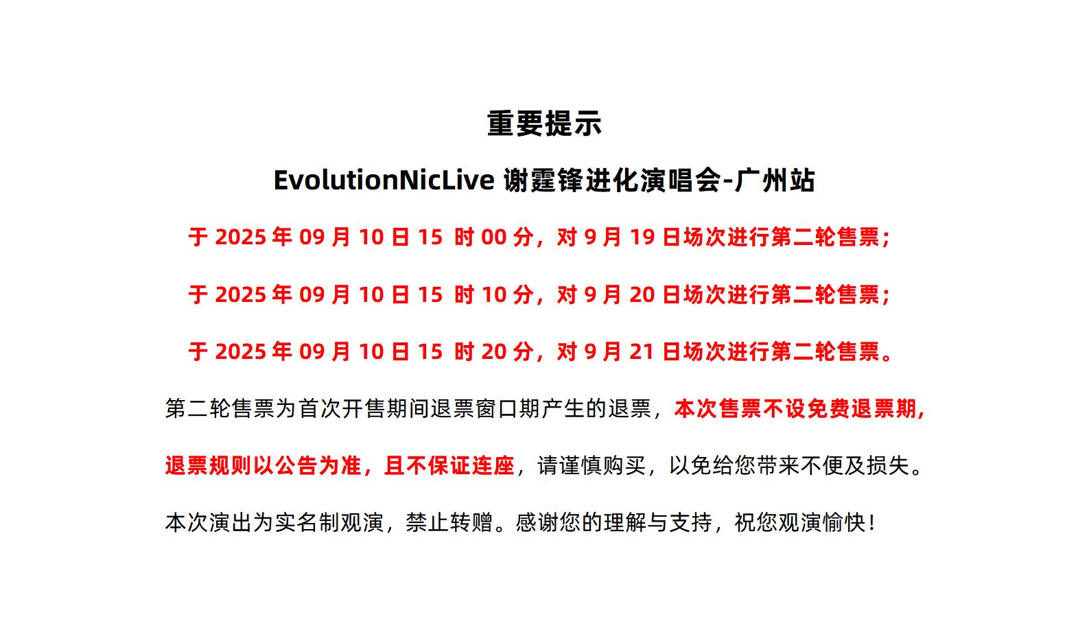 演出名称:【广州】“国台酒呈现”Evolution Nic Live 谢霆锋进化演唱会-广州站【网上订票】演出时间:2025.09.20-09.21