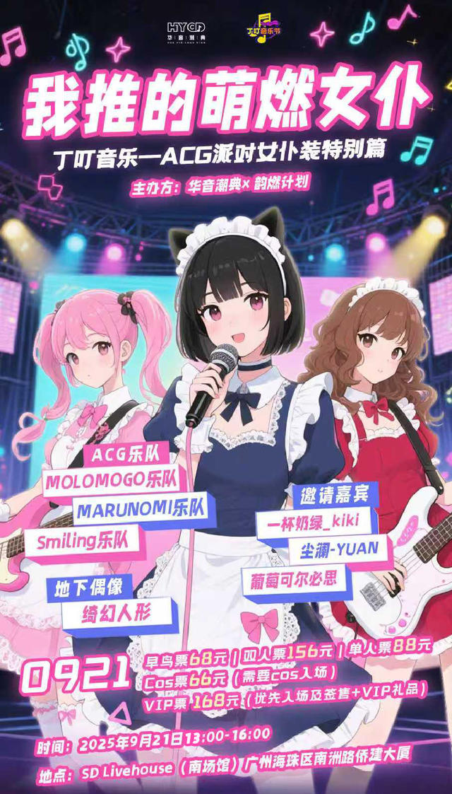 演出名称:【广州】「我推的萌燃女仆」丁叮音乐ACG派对女仆装特别篇【网上订票】演出时间:2025.09.21 周日 13:00