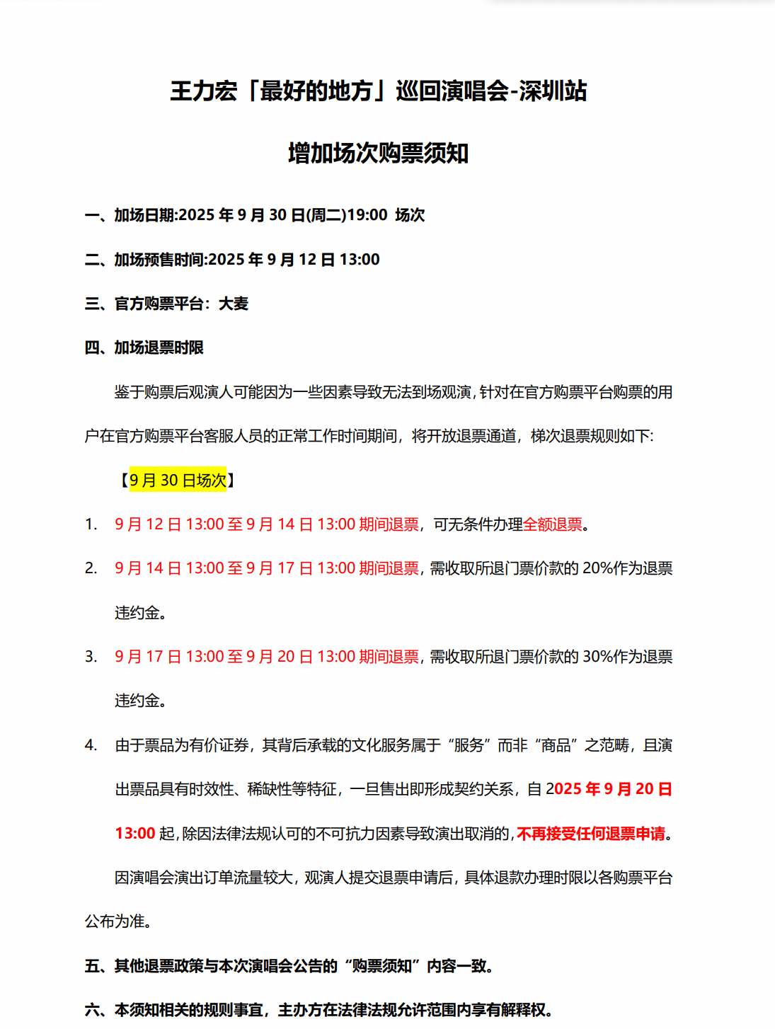演出名称:【深圳】王力宏「最好的地方」巡回演唱会-深圳站【网上订票】演出时间:2025.09.30-10.04