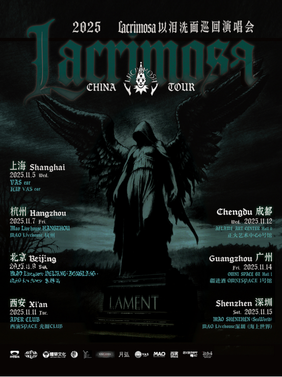 成军三十五载,发行16张全长专辑,Lacrimosa的创造力从未枯竭。从早期暗潮到交响金属,再到融入多元摇滚元素,他们拒绝重复,始终在探索哥特音乐的边界。本次2025年中国巡演,乐队将带着新专辑《Lament》(挽歌)震撼登场!让我们共同期待,Lacrimosa为中国乐迷倾情打造的,新一轮哥特盛宴。
