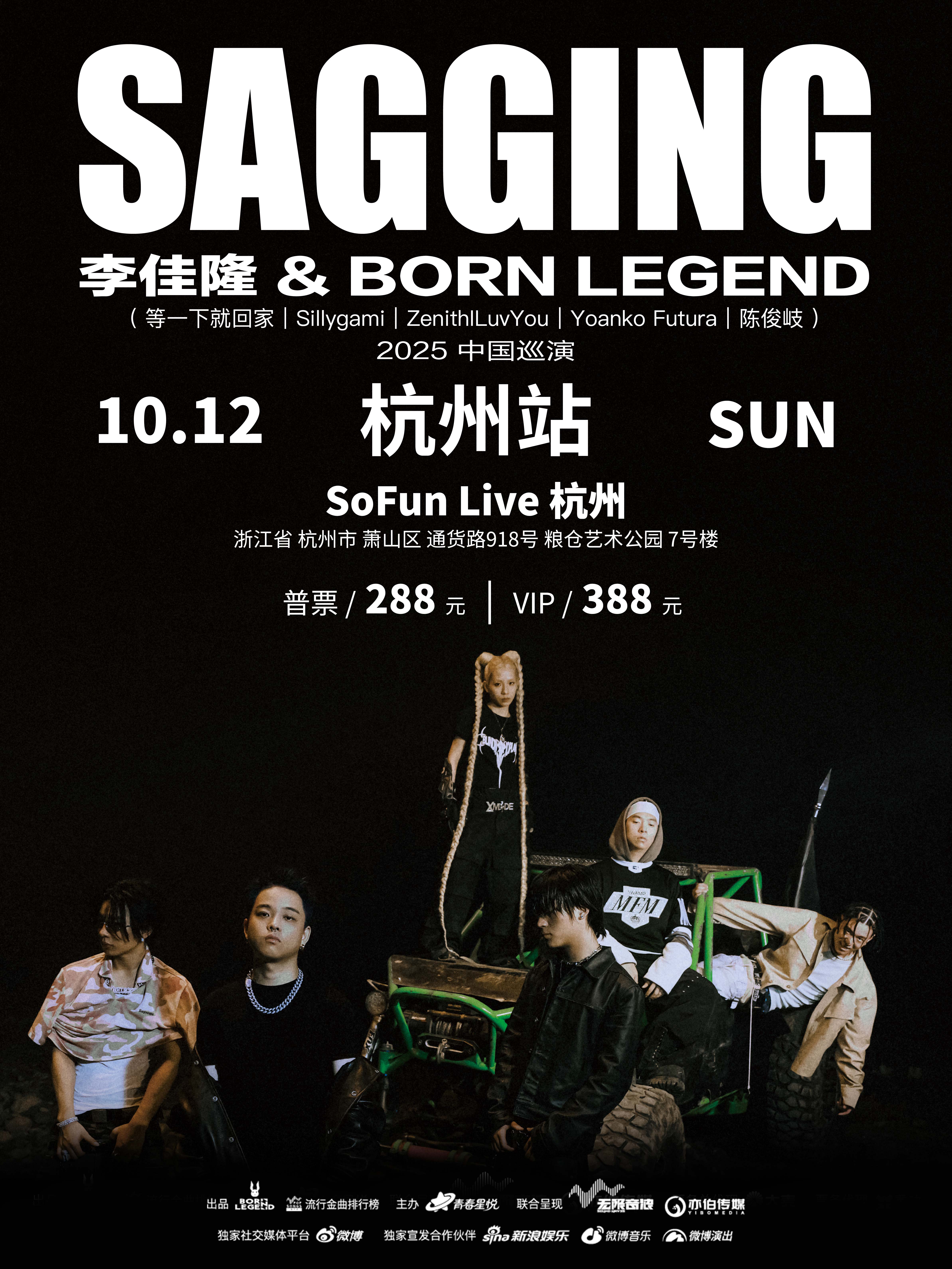1、【杭州】李佳隆Born Legend Music「SAGGING」巡演【网上订票】门票多少钱?