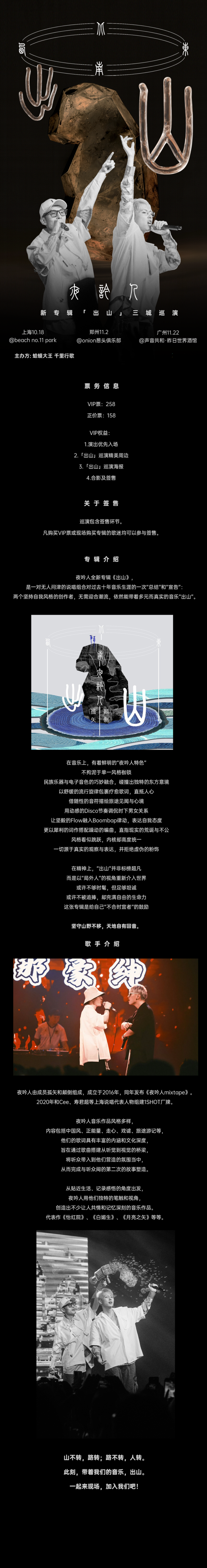 演出名称:【上海】夜吟人 孤矢&颠倒「出山」三城巡演 上海站【网上订票】演出时间:2025.10.18 周六 20:00