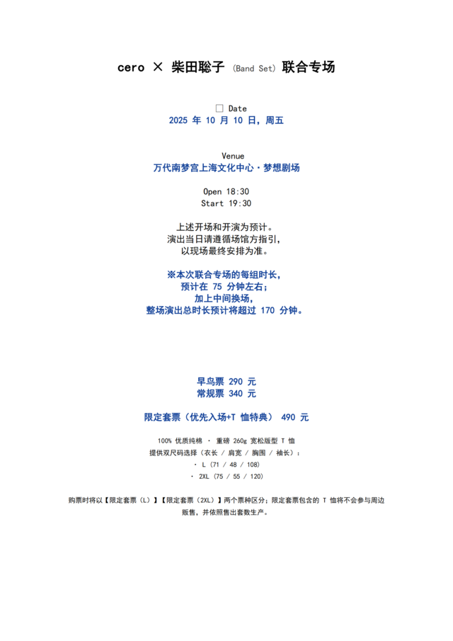 1、【上海】textur3 presents: cero × 柴田聡子 (band set) 联合专场【网上订票】门票多少钱?