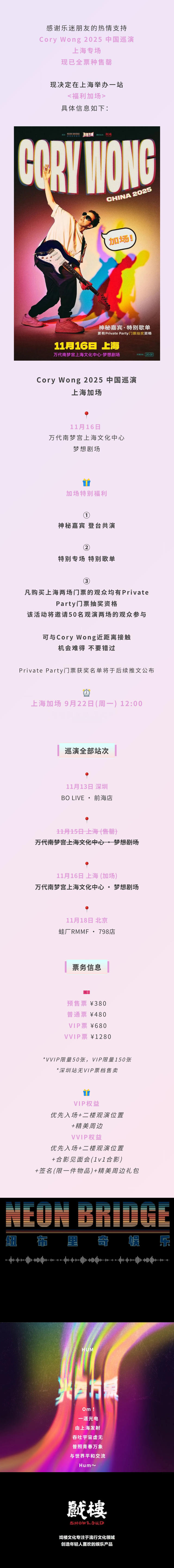 演出名称:【上海】【加场】Cory Wong 2025上海特别专场【网上订票】演出时间:2025.11.16 周日 20:00