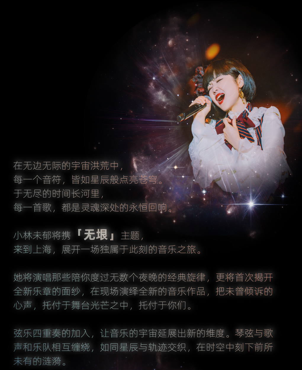 演出名称:【上海】【上海】小林未郁「无垠」2025年特别专场【网上订票】演出时间:2025.11.08 周六 19:30