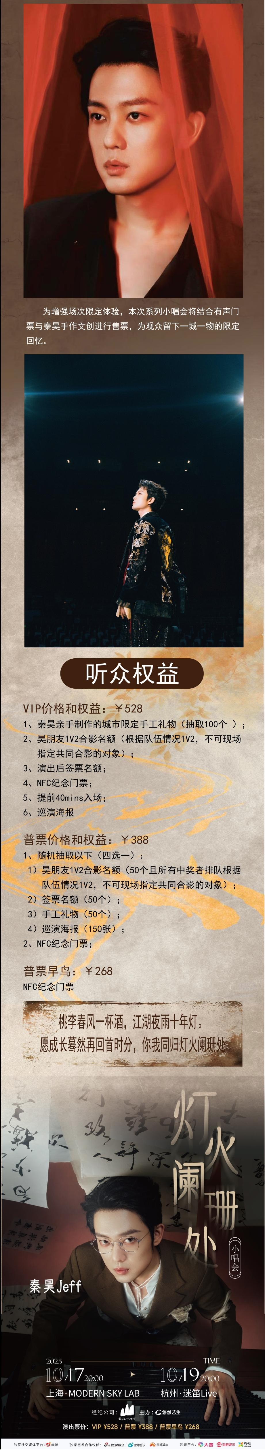 演出名称:【上海】秦昊Jeff【灯火阑珊处】小唱会【网上订票】演出时间:2025.10.17 周五 20:00
