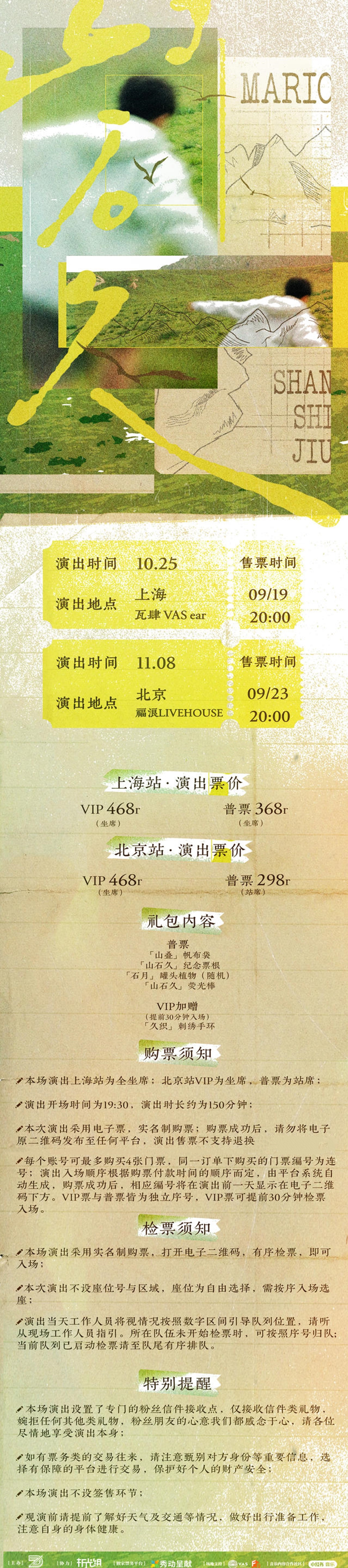 2、【上海】Mario「山石久」上海专场【网上订票】门票怎么买票?