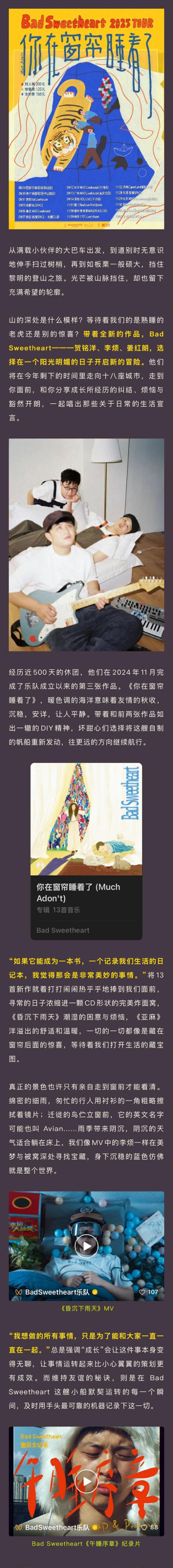 2、【上海】Bad Sweetheart「你在窗帘睡着了」2025巡演 上海站【网上订票】门票怎么买票?