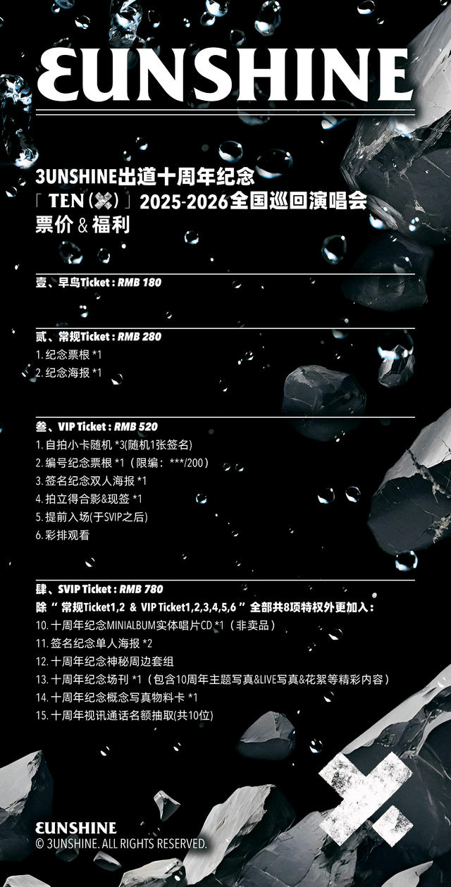 演出名称:【上海】3UNSHINE 十周年演唱会 TEN(X) 上海【网上订票】