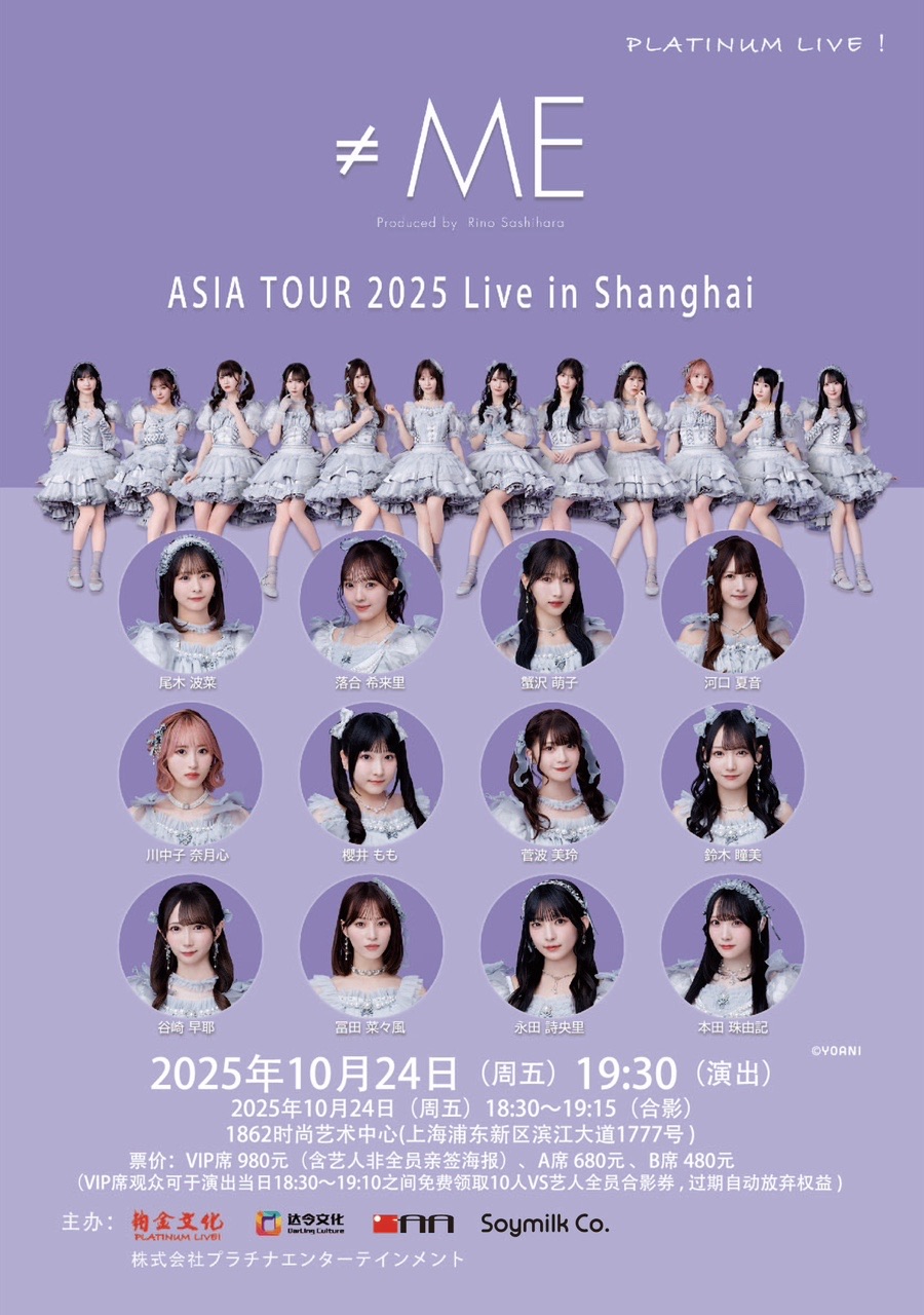 演出名称:【上海】≠ME ASIA TOUR 2025 Live in Shanghai【网上订票】演出时间:2025.10.24 周五 19:30