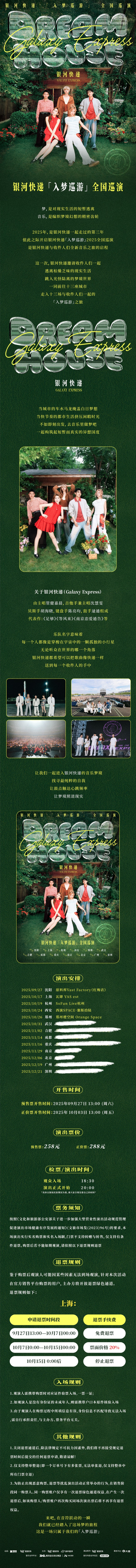 演出名称:【上海】「上海」2025银河快递「入梦巡游」巡演-上海站【网上订票】演出时间:2025.10.17 周五 20:00