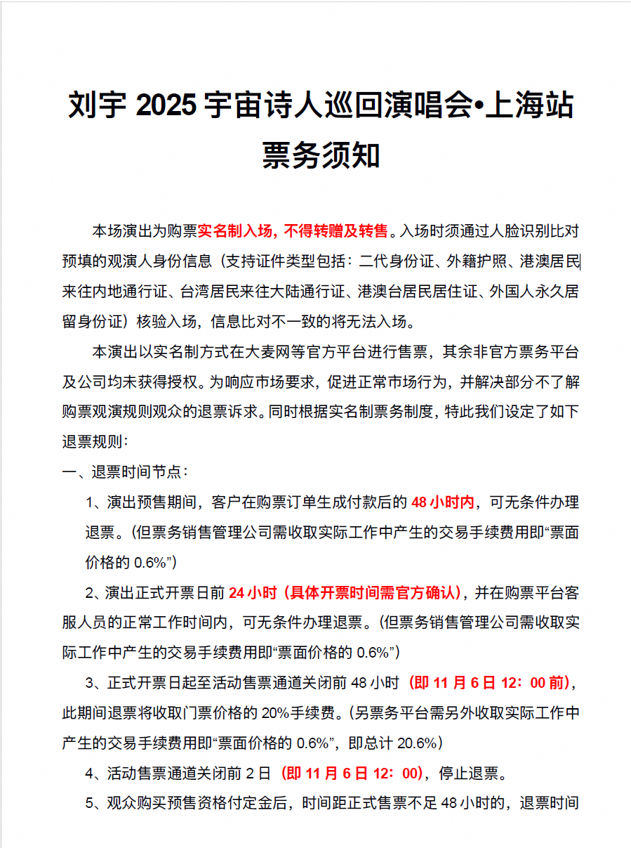 演出名称:【上海】刘宇2025宇宙诗人巡回演唱会·上海站【网上订票】演出时间:2025.11.08 周六 19:00