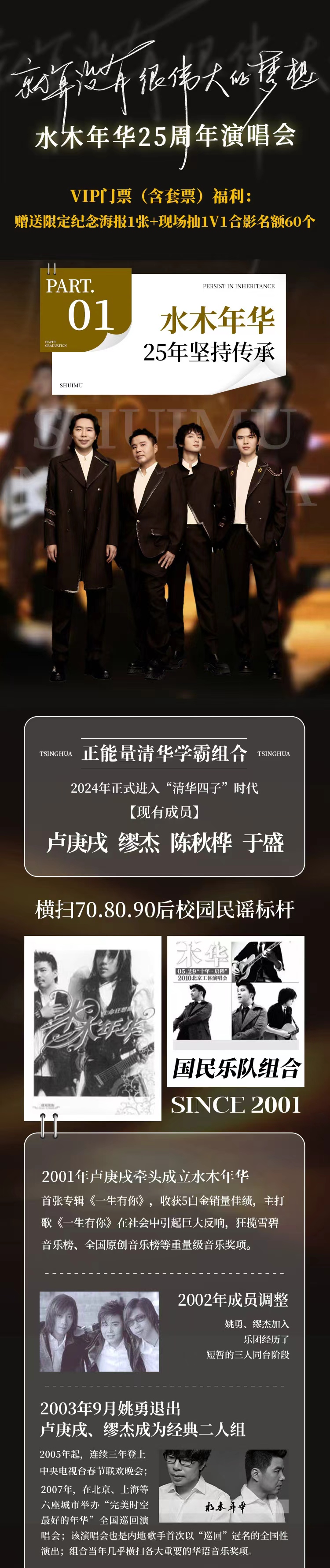 演出名称:【广州】水木年华25周年巡回演唱会—限定广州纪念专场【网上订票】演出时间:2025.11.22 周六 20:00