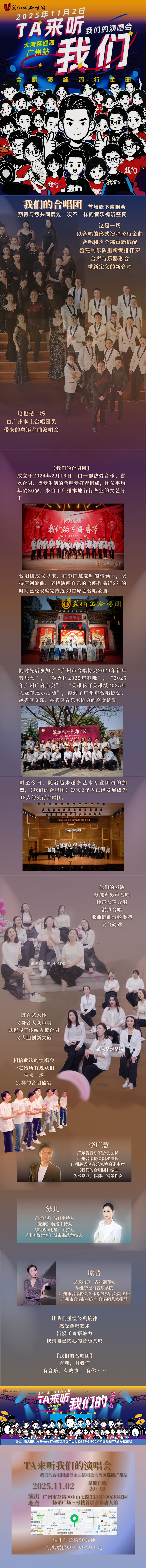 演出名称:【广州】“Ta来听我们的演唱会”我们的合唱团大湾区巡演广州站【网上订票】演出时间:2025.11.02 周日 20:00