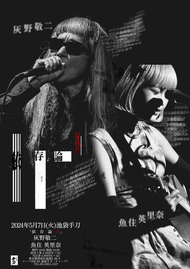 魚住英里奈 (うおずみえりな)熊本県出身、2017年8月にライブ活動を開始。路上ライブ、ライブハウス、BARの流し、などで活動を続けながら。2017年12月に初の単独公演「独唱」を開催。以降単独公演や企画ライブで(以下敬称略)灰野敬二、ASA-CHANG&巡礼、豊田道倫、割礼、藤田幸也など、多岐のジャンルに渡るアーティストとツーマンライブにて共演。2021年には1stアルバム「ISO1600の花嫁」をリリース。自身の生い立ちや境遇をも光に昇華するようなメロディ、誰かに寄り添う祈りの様な歌詞、力強い歌声からなるライブが魅力的である。