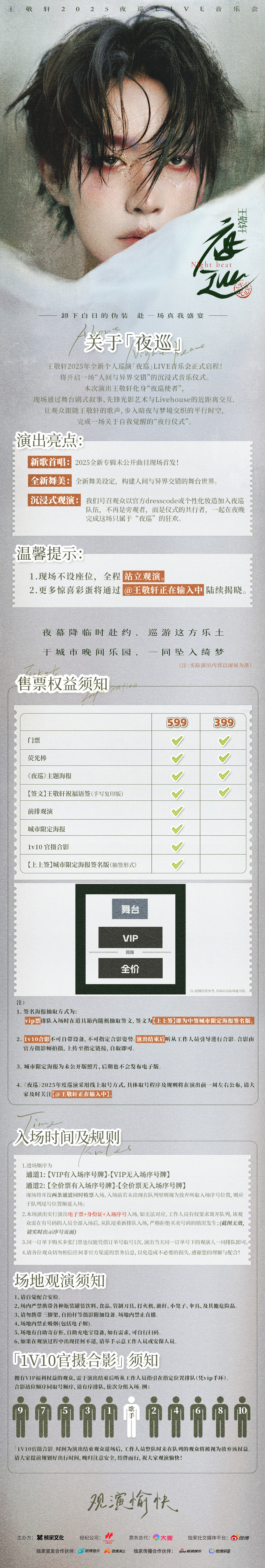 1、【广州】王敬轩2025「夜巡」LIVE音乐会 广州站【网上订票】门票多少钱?