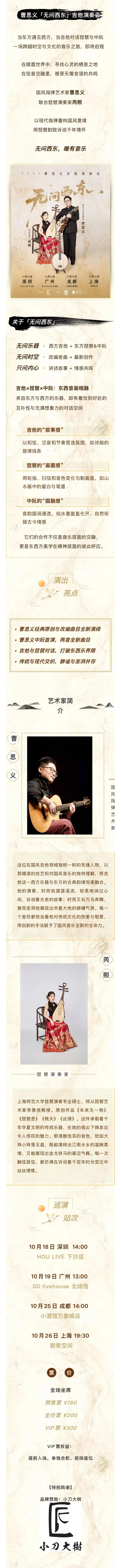 演出名称:【深圳】(全坐席)曹思义「无问西东」吉他演奏会 深圳站【网上订票】演出时间:2025.10.18 周六 14:00
