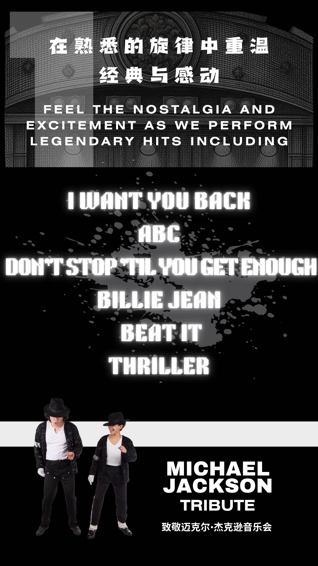 演出名称:【上海】MICHAEL JACKSON TRIBUTE 致敬迈克尔 · 杰克逊音乐会【网上订票】演出时间:2026.04.17-04.25
