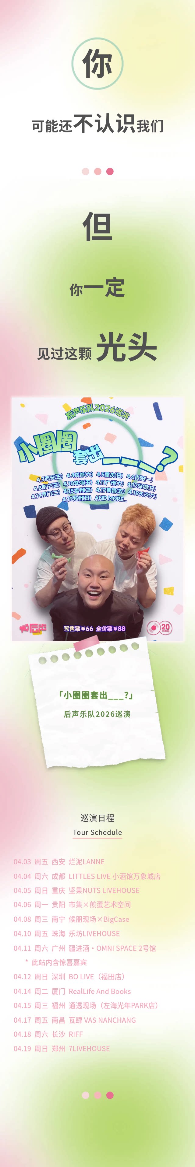 1、【广州】「小圈圈套出___?」后声乐队2026巡演 广州站【网上订票】门票多少钱?