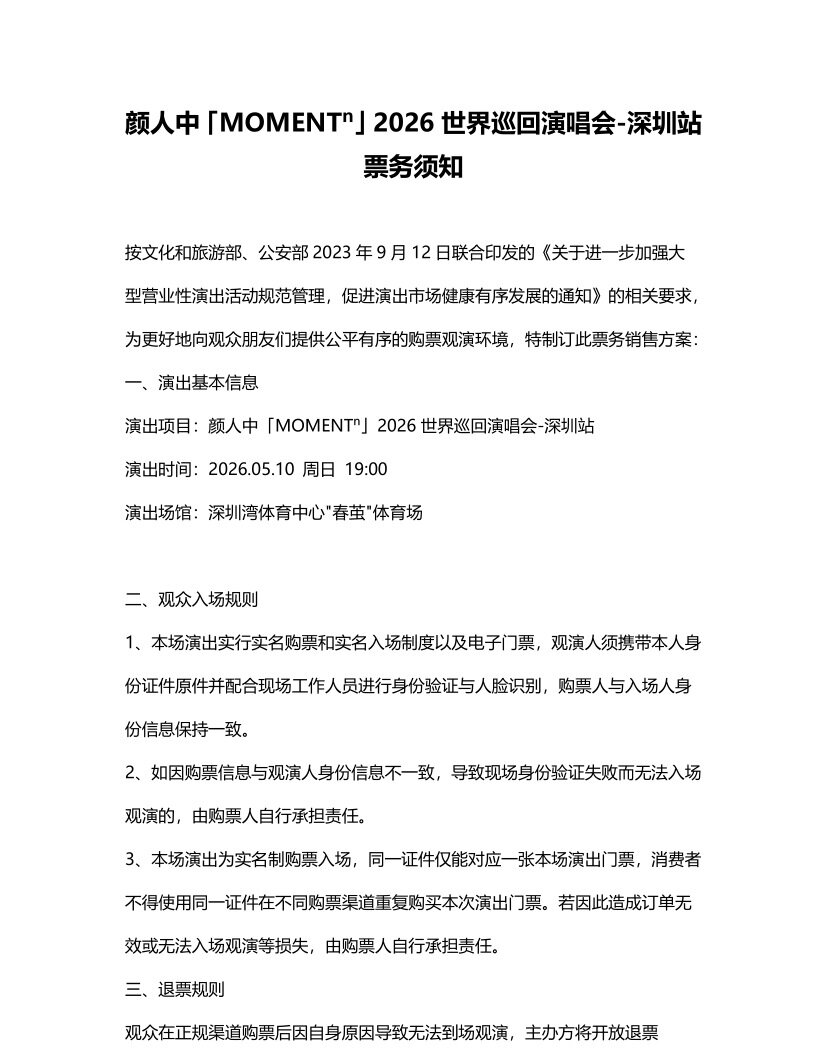 1、【深圳】颜人中「MOMENT?」2026世界巡回演唱会-深圳站【网上订票】门票多少钱?