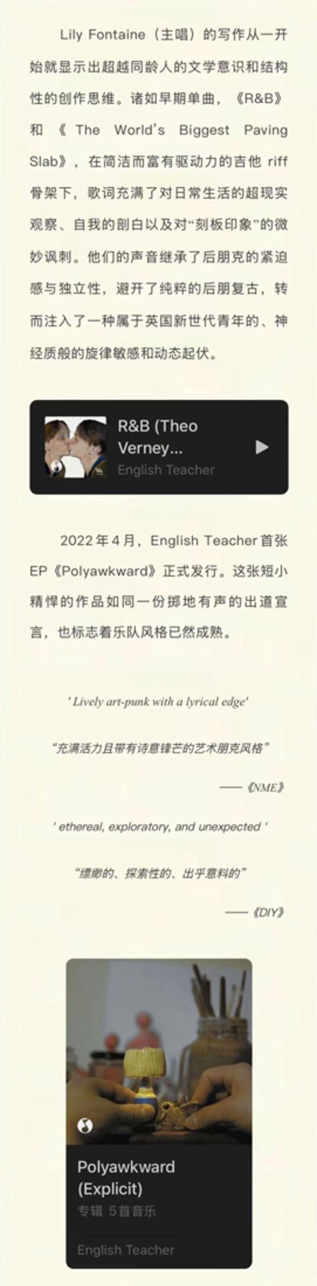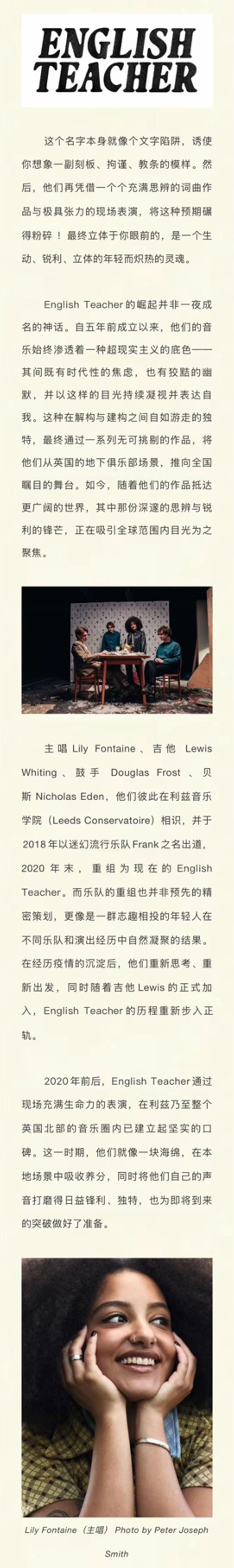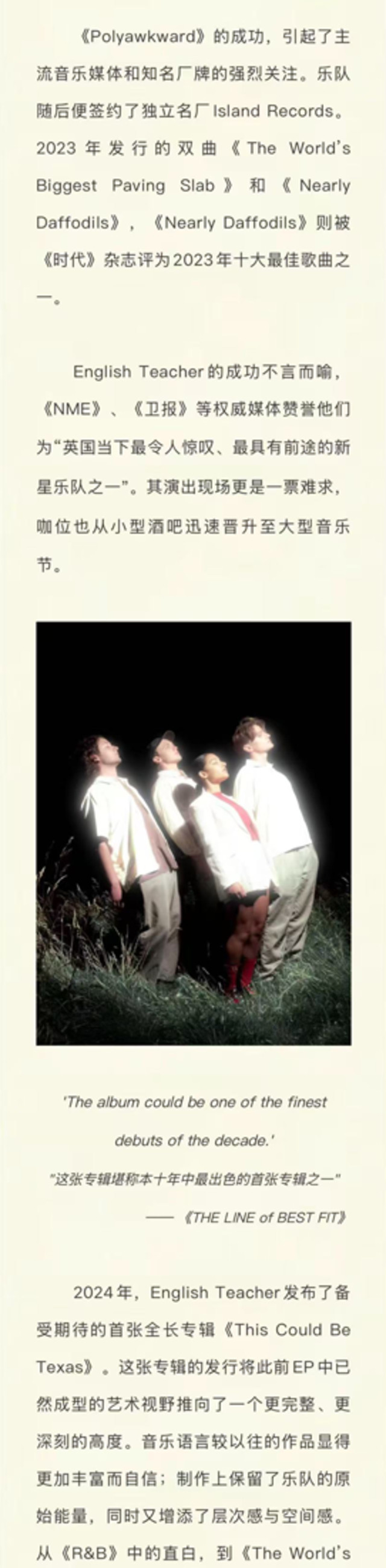 演出名称:【深圳】【千手集】English Teacher 2026 Live in Shenzhen【网上订票】演出时间:2026.04.30 周四 20:30
