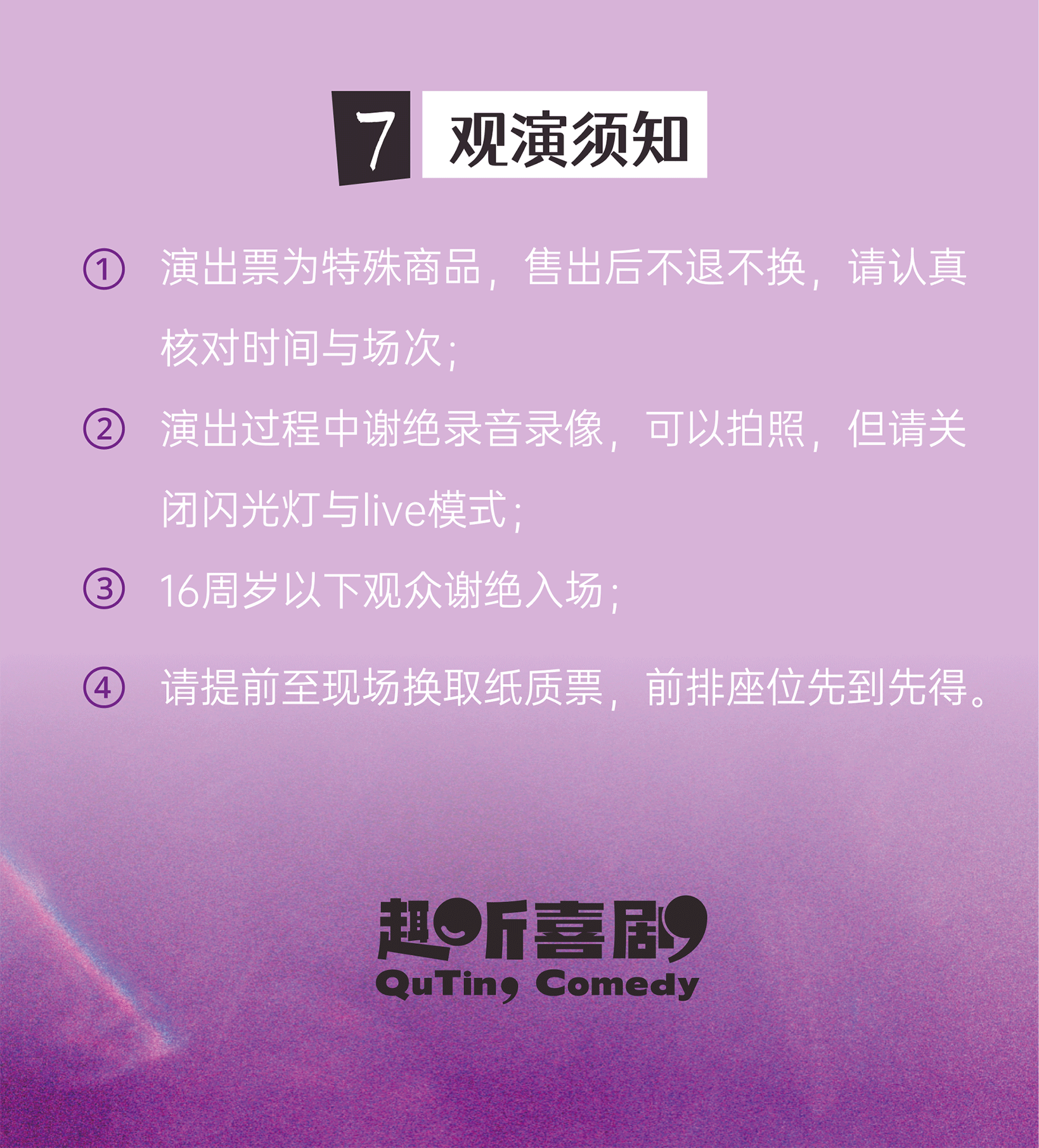 1.购买前请您提前规划好行程,做好相应准备,以免影响您的正常观演,感谢您的理解和配合。